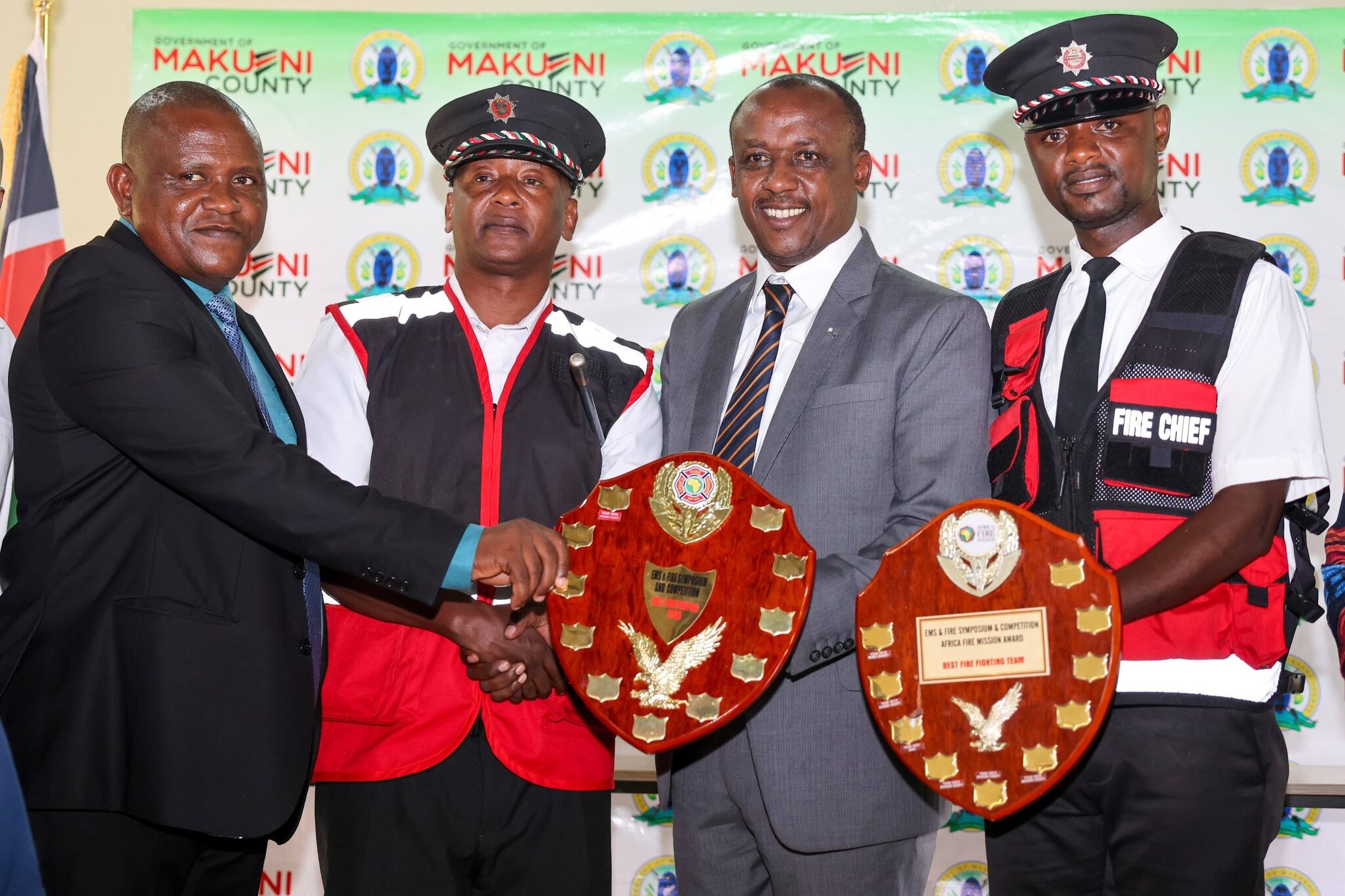 He singled out the Makueni County Fire Brigade for winning four consecutive trophies at the Annual Africa Fire Mission Kenya Symposium and competitions, describing the team as a model of discipline, innovation, and dedication.